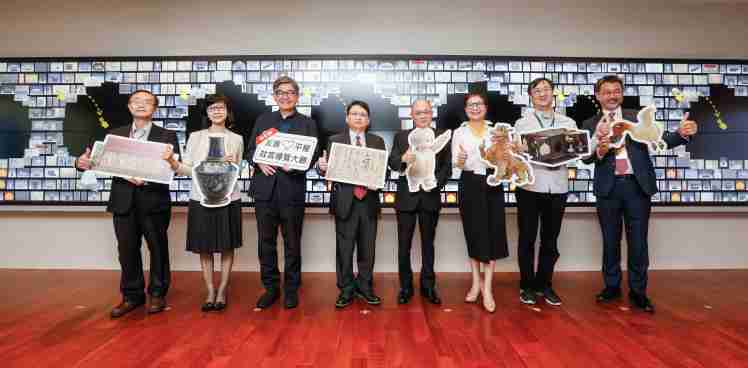 william威廉中文官网携手创利空间为故宫建置的智慧文物互动导览墙及轮播墙,,今日正式启用。。。。(左四:william威廉中文官网新事业暨投资管理总部副总经理杨本豫、、右四:故宫博物院院长吴密察、、、、右三:太极影音董事长黄宝云)